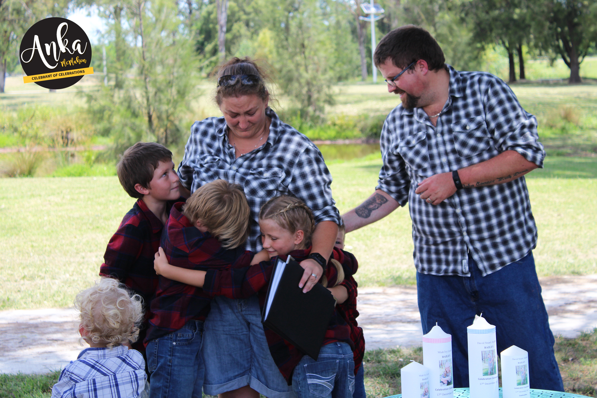 FEELING THE LOVE – “The ceremony for my son’s naming day was beautiful. Anka did a fantastic job to ensure everything was how we wanted. She is so easy going, friendly and professional. The little extras and thoughtful gift for us were really nice surprises. Would definitely recommend Anka if you are looking for a fresh and personalised celebrant for any occasion.” Maria Mutimer (Emmett’s Mum).